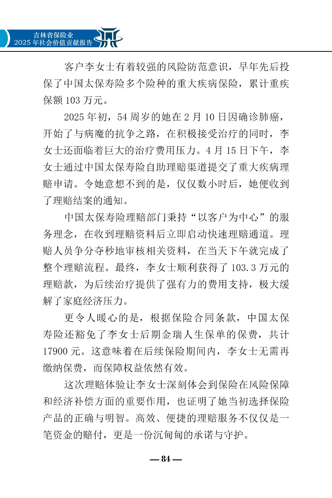 “保险业姓保”——理赔案例